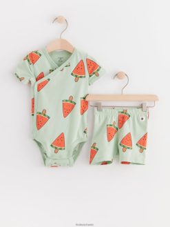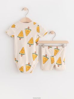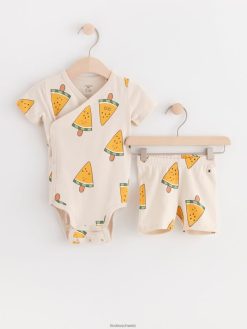 ensemble avec body cache-cœur et short motard beige clair Lindex vêtements bébé D44L8F4362