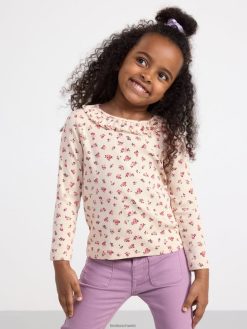 top côtelé avec fleurs et col volanté beige clair Lindex vêtements enfants D44L8F2735