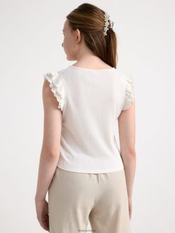 top côtelé en laine mérinos blanc légèrement poussiéreux Lindex vêtements femmes D44L8F165