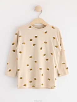 haut à manches longues avec imprimé et mesh beige clair Lindex vêtements enfants D44L8F2746