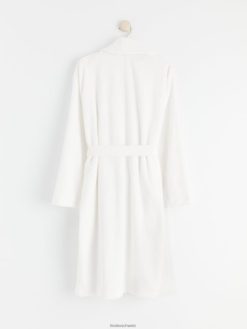 robe portefeuille en seersucker à manches bouffantes blanc cassé Lindex vêtements femmes D44L8F103
