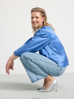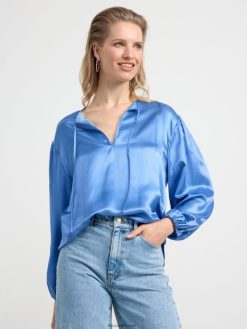 blouse en soie mélangée à manches longues bleu clair poussiéreux Lindex vêtements femmes D44L8F460