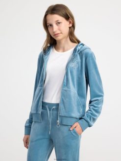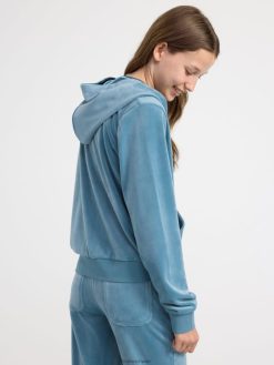 sweat à capuche zippé en velours bleu clair poussiéreux Lindex vêtements enfants D44L8F3448