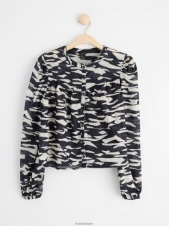 blouse en coton à motif avec boutonnage bleu foncé Lindex vêtements femmes D44L8F476