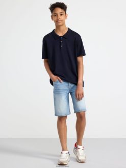 polo à manches courtes bleu marine foncé Lindex vêtements enfants D44L8F2872