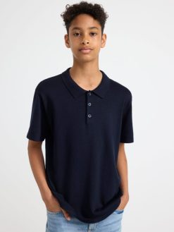 polo en maille fine bleu marine foncé Lindex vêtements enfants D44L8F2876