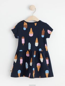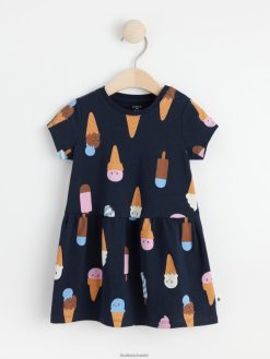 robe à manches courtes avec imprimé crème glacée bleu marine foncé Lindex vêtements bébé D44L8F4320