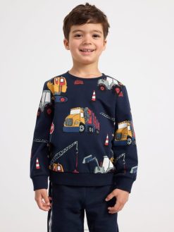 sweat-shirt avec des véhicules de travail bleu marine foncé Lindex vêtements enfants D44L8F3428