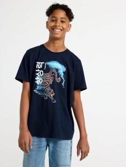 t-shirt avec imprimé bleu marine foncé Lindex vêtements enfants D44L8F2771
