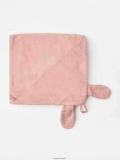 serviette de bain éponge avec capuche lapin rose poussiéreux Lindex accessoires bébé D44L8F4275