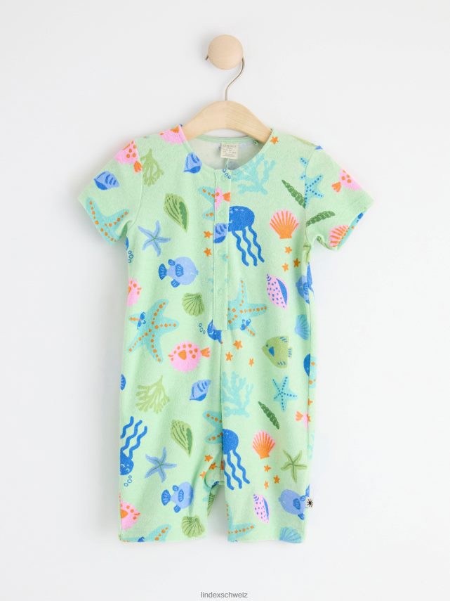 une barboteuse super mignonne et confortable en tissu éponge doux, avec un imprimé d’animaux marins coloré sur toute la surface. matériel. c’est une pièce certifiée Gots. il est fabriqué à partir de coton biologique et chaque étape de la production a été certifiée de manière indépendante pour garantir qu’elle respecte les exigences sociales et environnementales de Gots (norme mondiale des textiles biologiques).