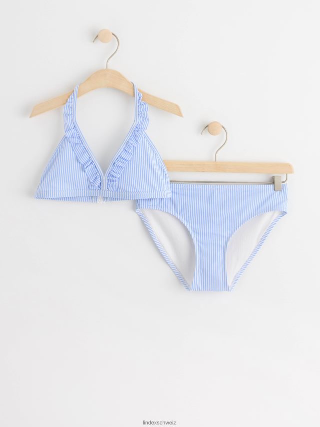 un haut de bikini dos nu doux et confortable avec des volants et une culotte assortie, tous deux avec un motif intégral. durabilité. cette pièce est partiellement réalisée en polyamide recyclé. En utilisant du polyamide recyclé, cela signifie que des matériaux qui autrement auraient été gaspillés ont une autre chance. il est beaucoup plus économe en ressources que la production de nouveaux matériaux, ce qui le rend meilleur pour l’environnement et réduit l’impact climatique.