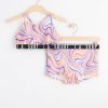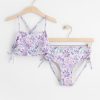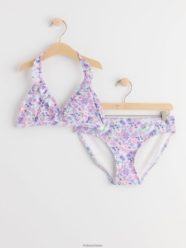 un haut de bikini dos nu doux et confortable avec des volants et une culotte assortie, tous deux avec un motif intégral. durabilité. cette pièce est partiellement réalisée en polyamide recyclé. En utilisant du polyamide recyclé, cela signifie que des matériaux qui autrement auraient été gaspillés ont une autre chance. il est beaucoup plus économe en ressources que la production de nouveaux matériaux, ce qui le rend meilleur pour l’environnement et réduit l’impact climatique.
