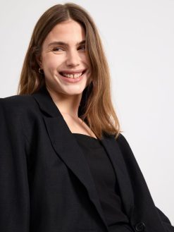 un blazer élégant à un seul bouton, parfait pour avoir du style pendant les mois les plus chauds. qualité supérieure. il s’agit d’une pièce de qualité supérieure, partiellement réalisée en lin. le lin est une matière naturelle aérée, résistante et agréable à porter.