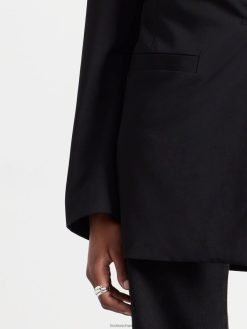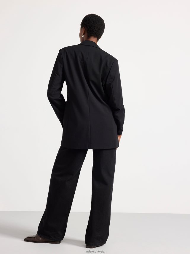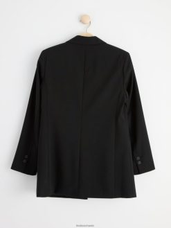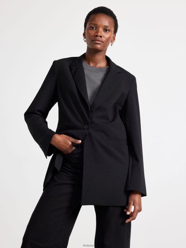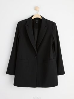 un blazer noir élégant avec une fermeture à un seul bouton, une doublure et des poches sur le devant. matériel. cette pièce est partiellement fabriquée en polyester recyclé. Lorsque l’on utilise du polyester recyclé, cela signifie que des matériaux qui ont déjà été produits, comme les bouteilles en PET, ont une autre chance. il est beaucoup plus économe en ressources que la production de nouveaux matériaux, ce qui le rend meilleur pour l’environnement et réduit l’impact sur le climat.