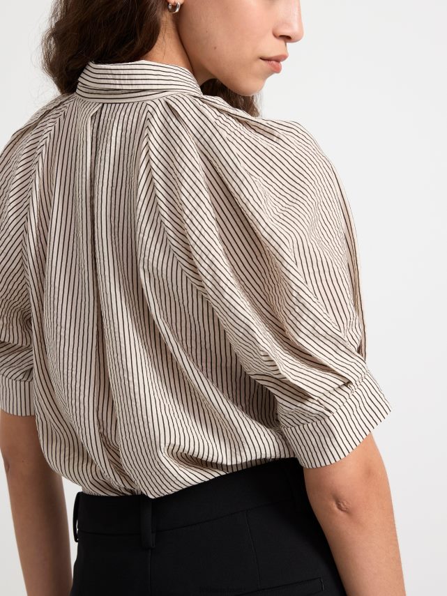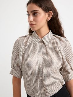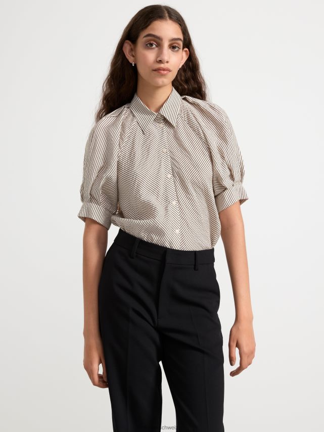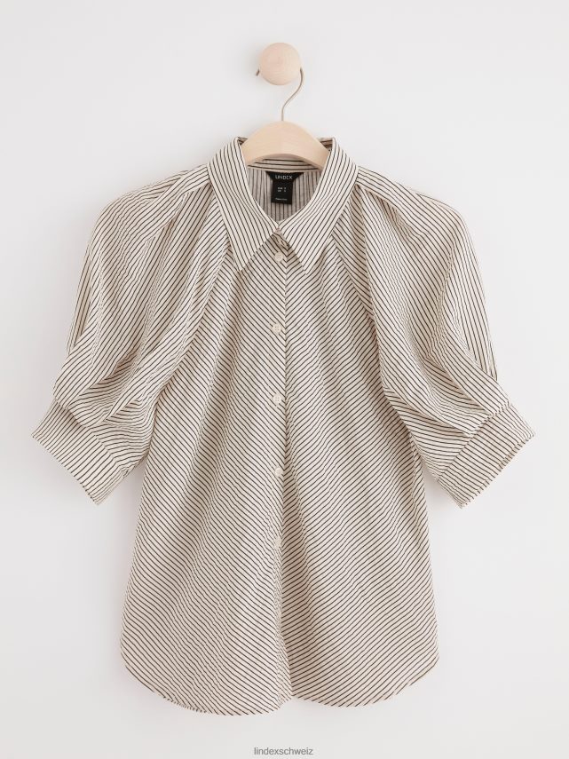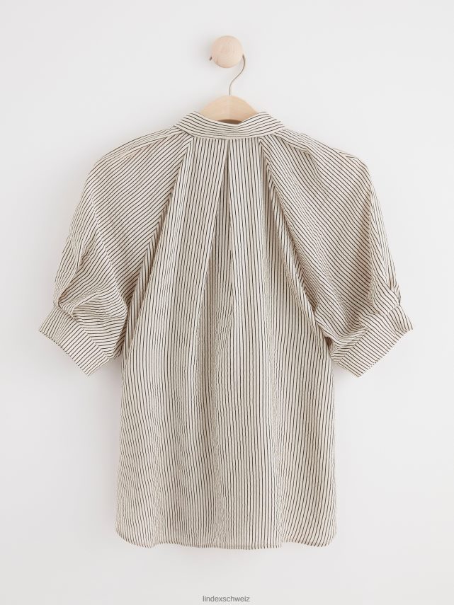 un chemisier élégant avec des manches courtes bouffantes, un col chemise et des boutons sur le devant. fabriqué en mélange de viscose doux. matériel. cette pièce est en partie basée sur une nouvelle fois by sodra, une nouvelle matière première innovante en fibre de viscose, où des textiles recyclés sont combinés avec du bois issu de forêts gérées de manière responsable. oncemore est un matériau de haute qualité et est produit avec un impact moindre sur l’environnement par rapport aux matières premières en fibre de viscose conventionnelles.