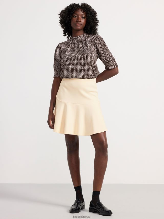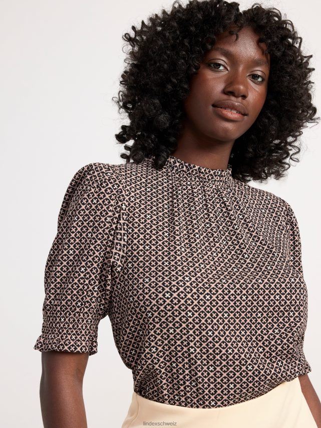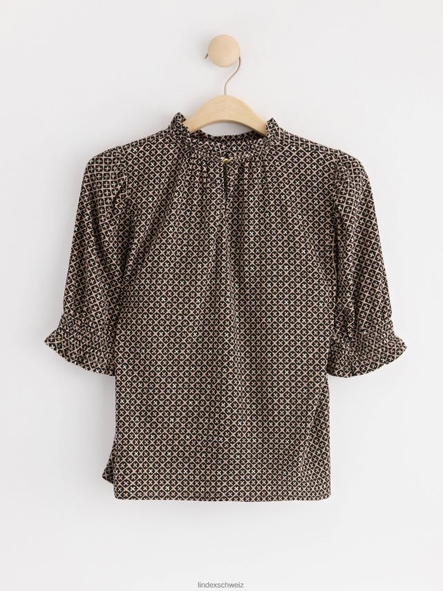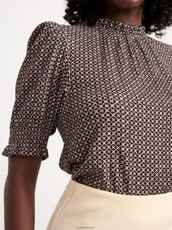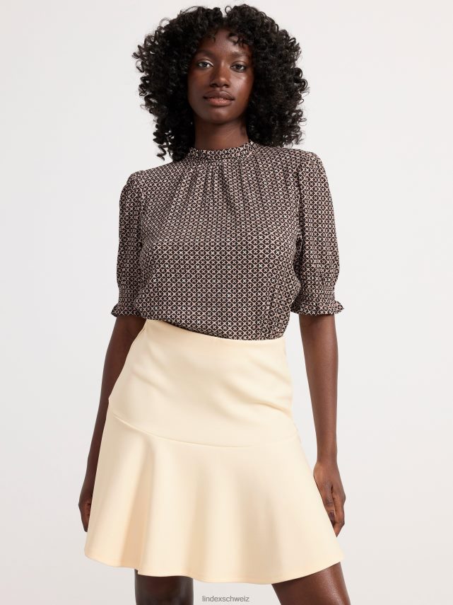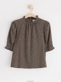 un chemisier élégant dans une matière légère et froissée, avec des manches courtes bouffantes et un col à volants.