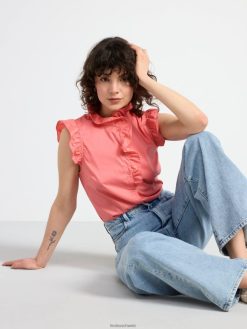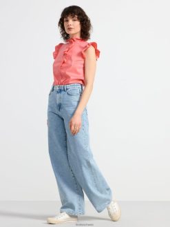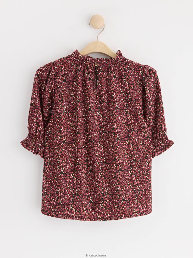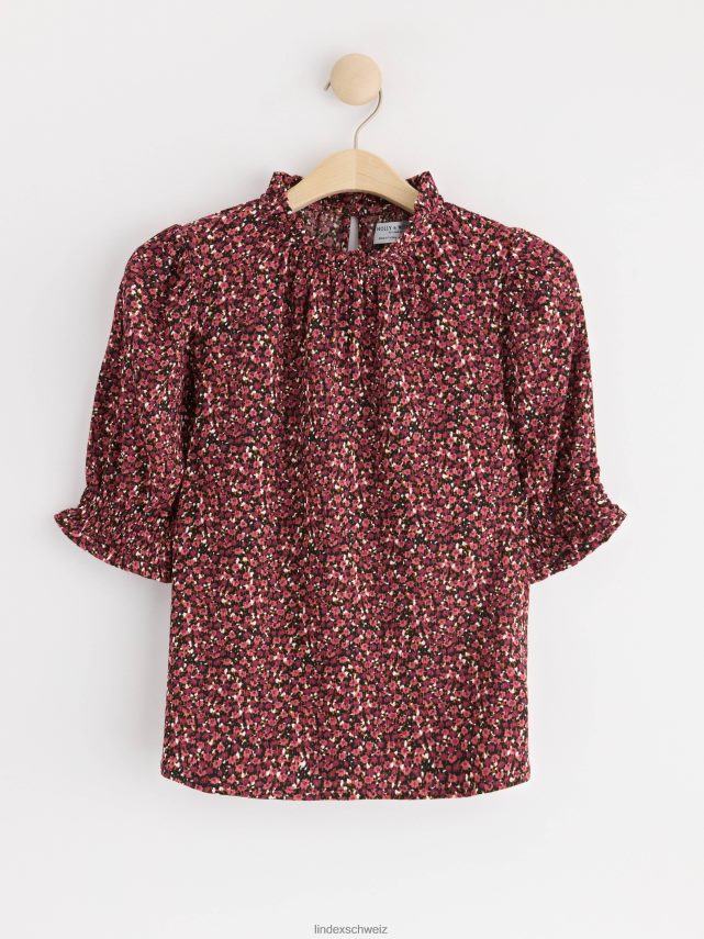 un chemisier élégant dans une matière légère et froissée, avec des manches courtes bouffantes et un col à volants.