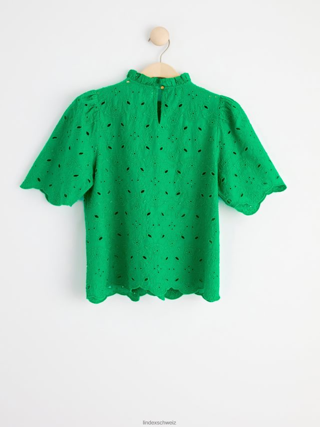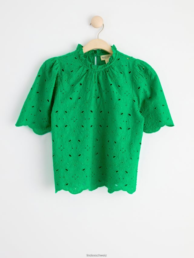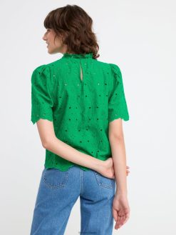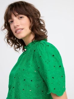 un chemisier en coton élégant avec des manches courtes, un col à volants et de la broderie anglaise partout. matériel. cette pièce est partiellement réalisée en coton biologique. le coton biologique est cultivé sans produits chimiques toxiques ni graines de coton génétiquement modifiées. la culture protège la biodiversité, les écosystèmes et les personnes en utilisant des processus naturels plutôt que des intrants artificiels.