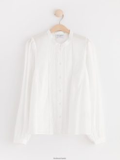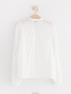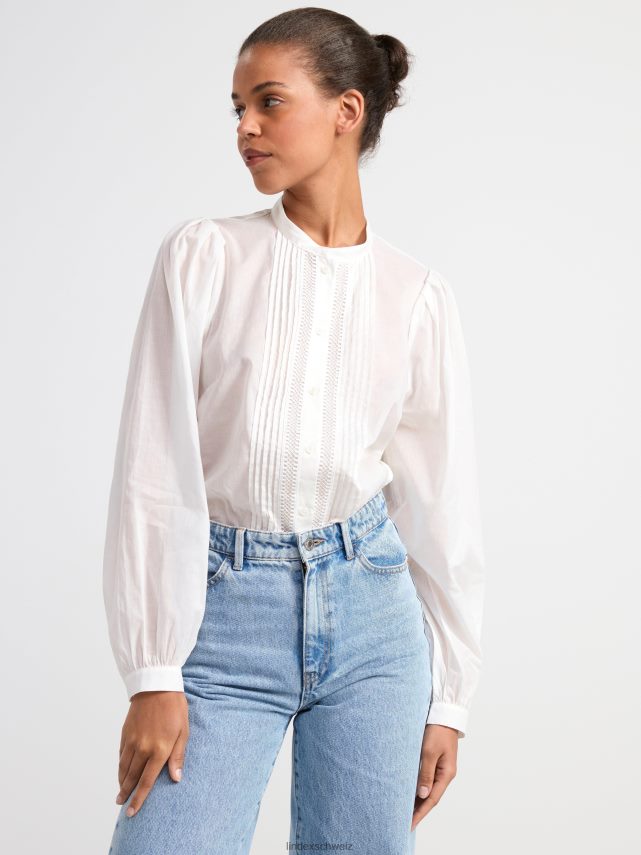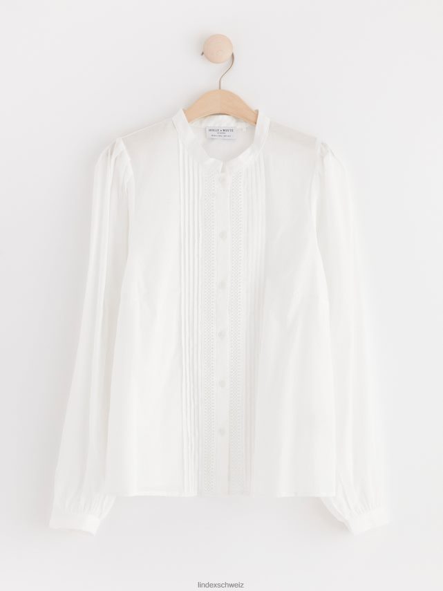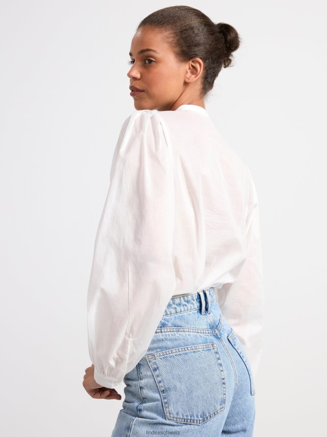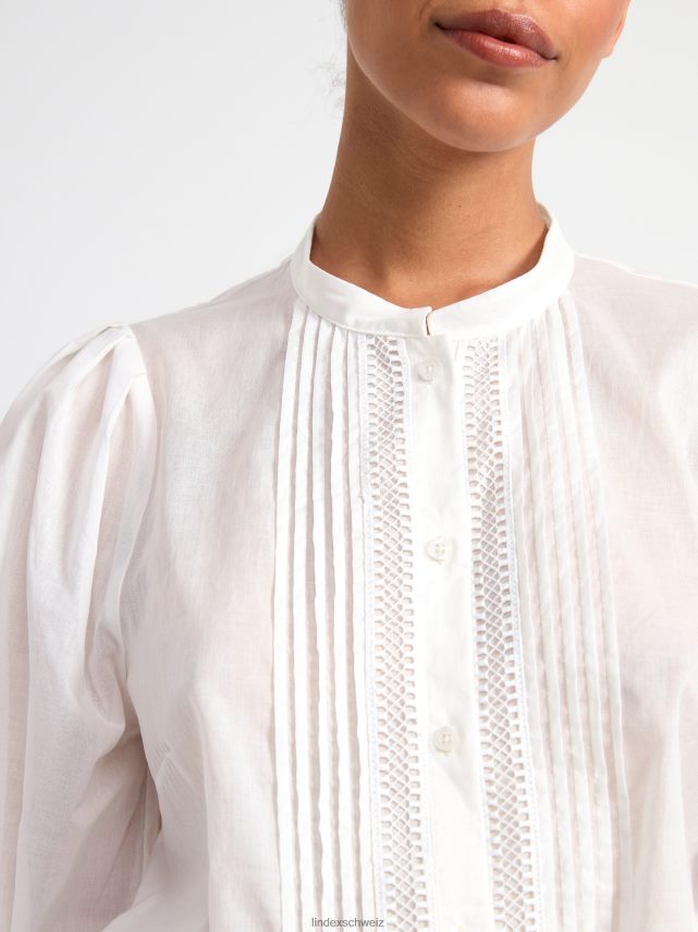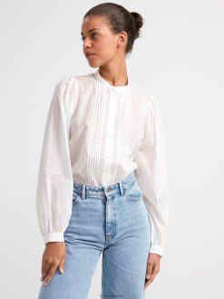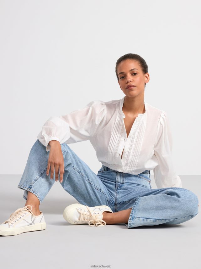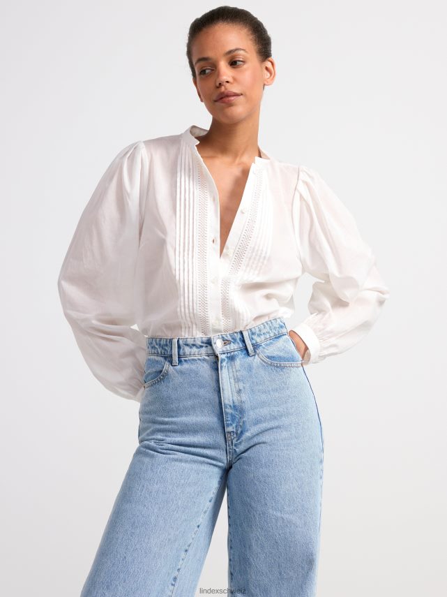 chemisier en coton à manches larges, orné de broderies et de nervures.