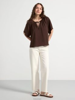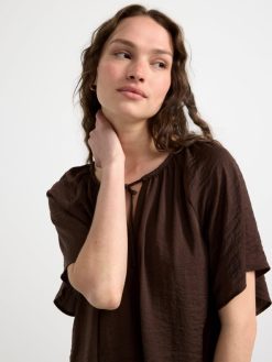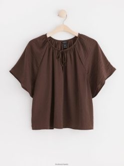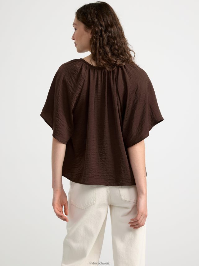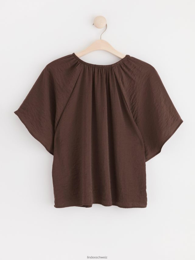 blouse en satin à manches courtes brun poussiéreux foncé Lindex vêtements femmes D44L8F409