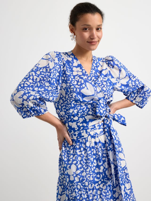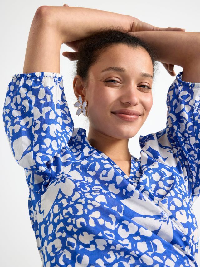 un chemisier léger avec des manches bouffantes et un motif lumineux sur toute la surface.