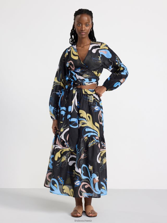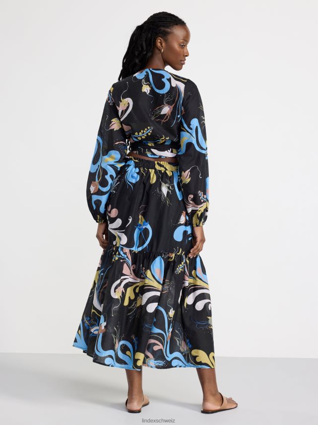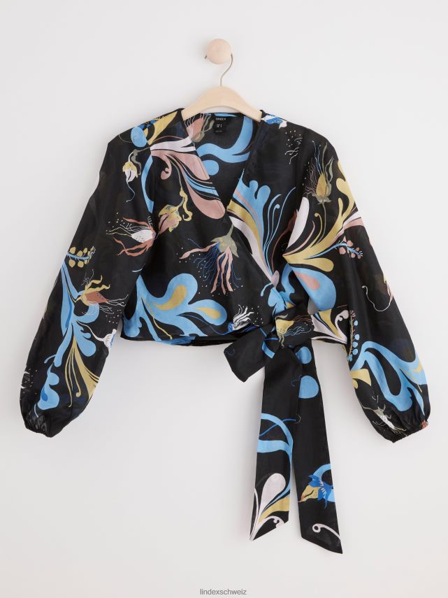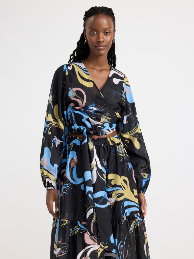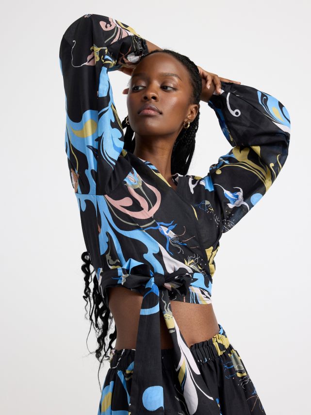 un chemisier léger avec des manches bouffantes et un motif intégral, confectionné en coton tissé doux. le motif est conçu par l’artiste textile suédoise Lisa Sander.