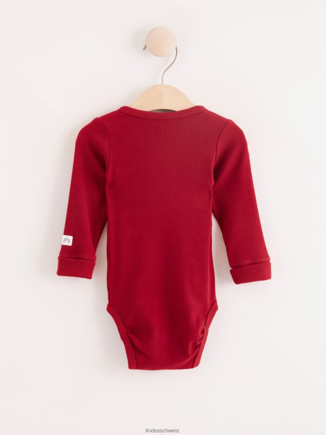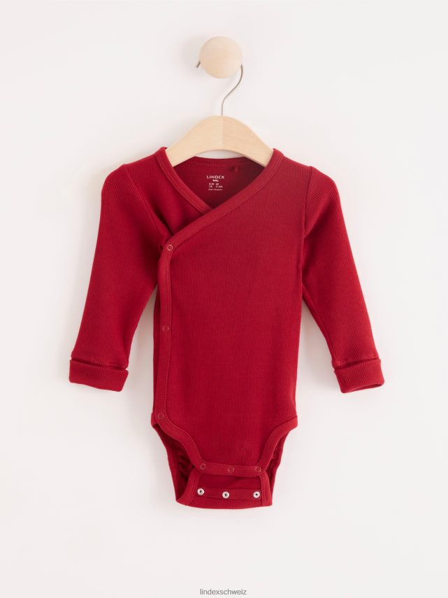 body cache-cœur côtelé rouge poussiéreux foncé Lindex vêtements bébé D44L8F4277