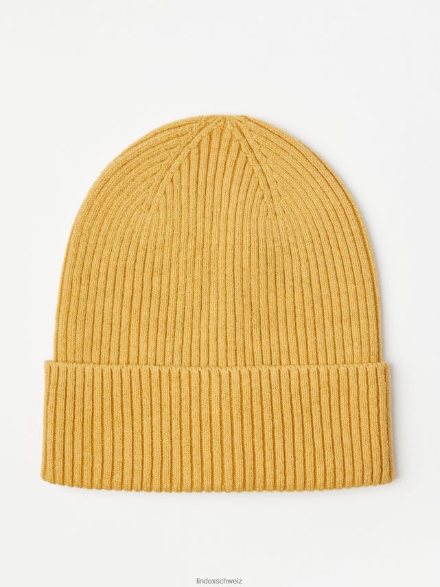 Bonnet en tricot côtelé en coton avec un large ourlet plié.