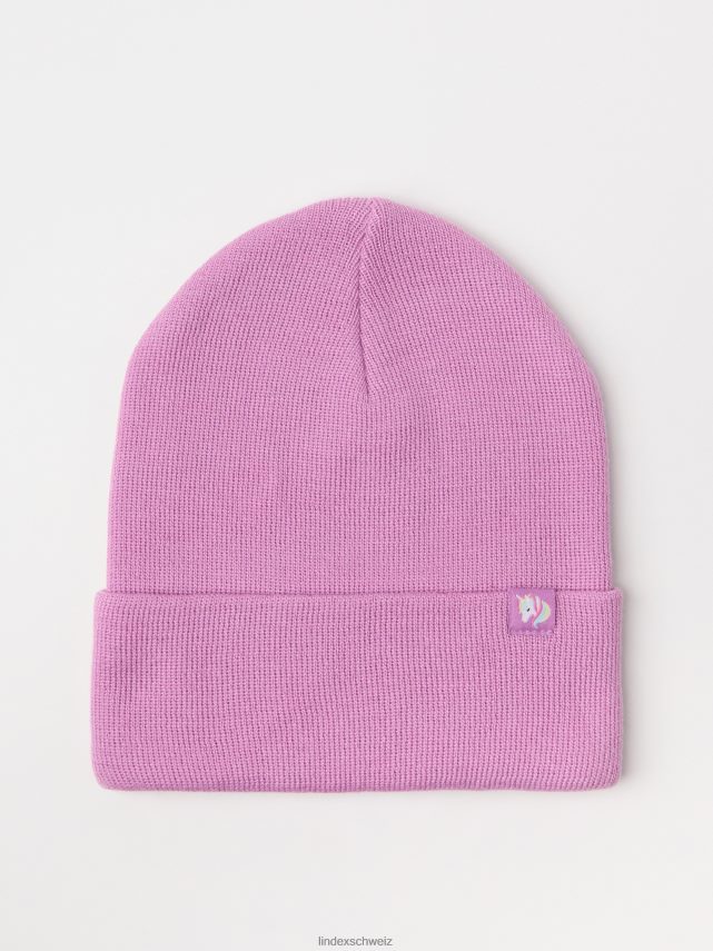 bonnet tricoté avec un bord plié et une étiquette tissée sur le devant, parfait pour la saison froide.