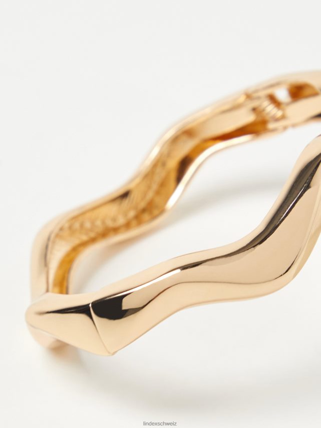 un bracelet élégant et rigide de couleur dorée, de forme ondulée.