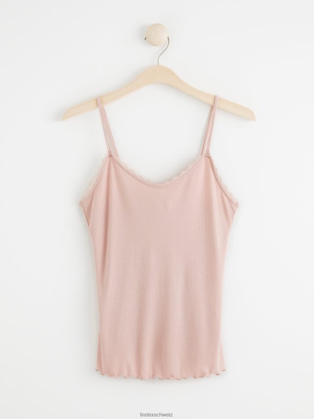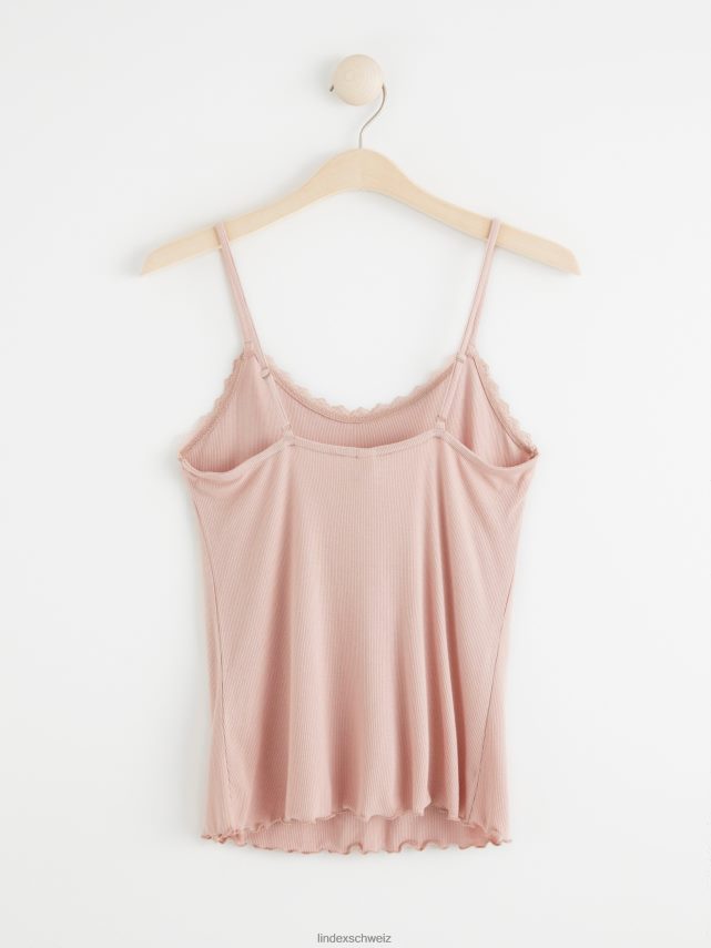 un caraco côtelé ultra doux avec une bordure en dentelle transparente et de fines bretelles réglables. matériel. cette pièce est confectionnée en lenzing ecovero, une option plus durable par rapport à la viscose conventionnelle. le matériau provient d’une foresterie responsable et est produit avec un impact moindre sur l’environnement, en UE