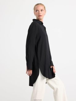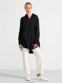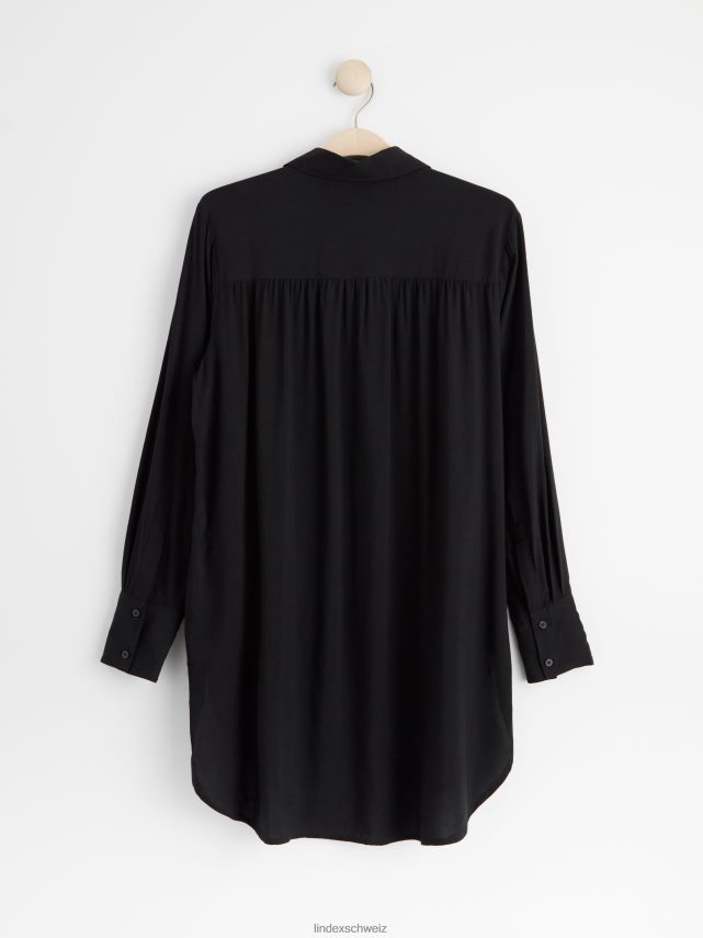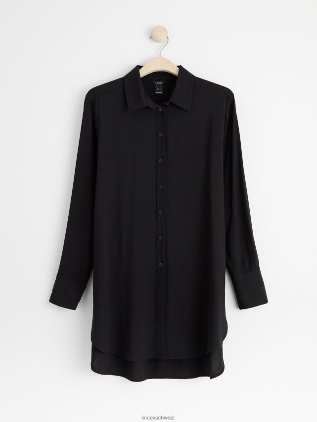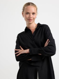 une chemise longue avec un col rabattable, des poignets à manches longues et une fermeture boutonnée sur le devant. matériel. cette pièce est fabriquée en écovero Lenzing, une option plus durable par rapport à la viscose conventionnelle. le matériau provient d’une foresterie responsable et est produit avec un impact moindre sur l’environnement.