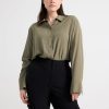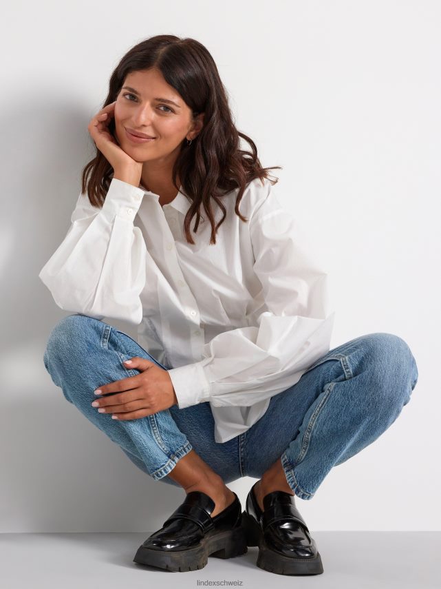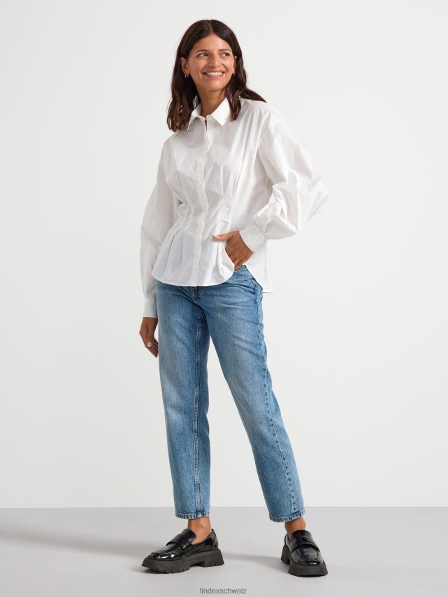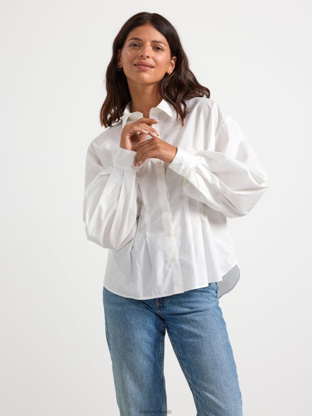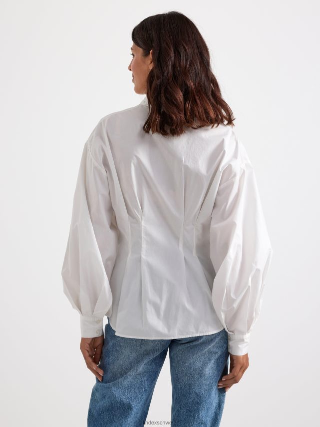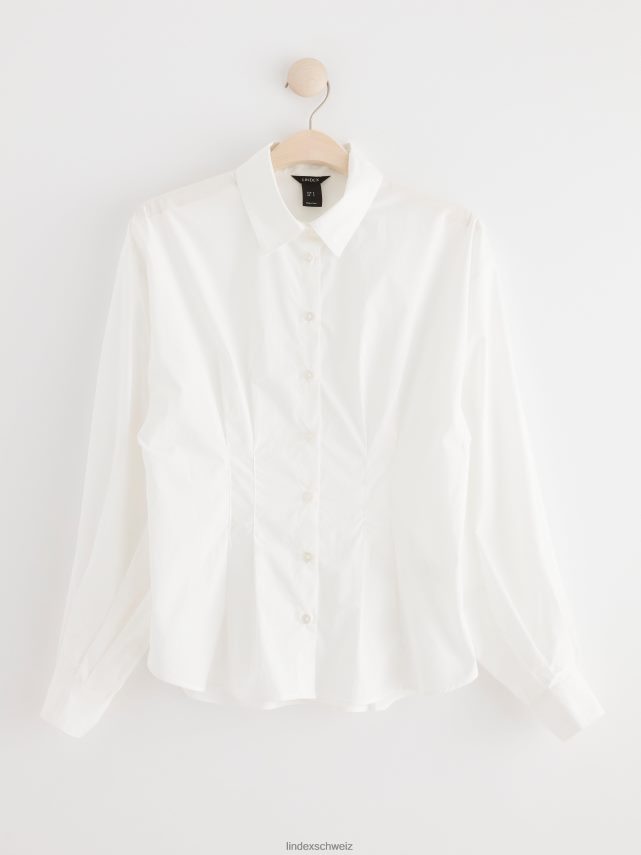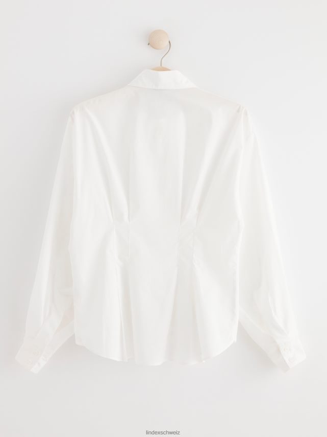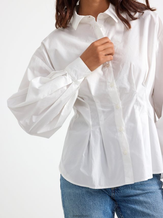 Chemise tissée en coton impeccable avec manches longues bouffantes, silhouette ajustée et fronces sur le devant.