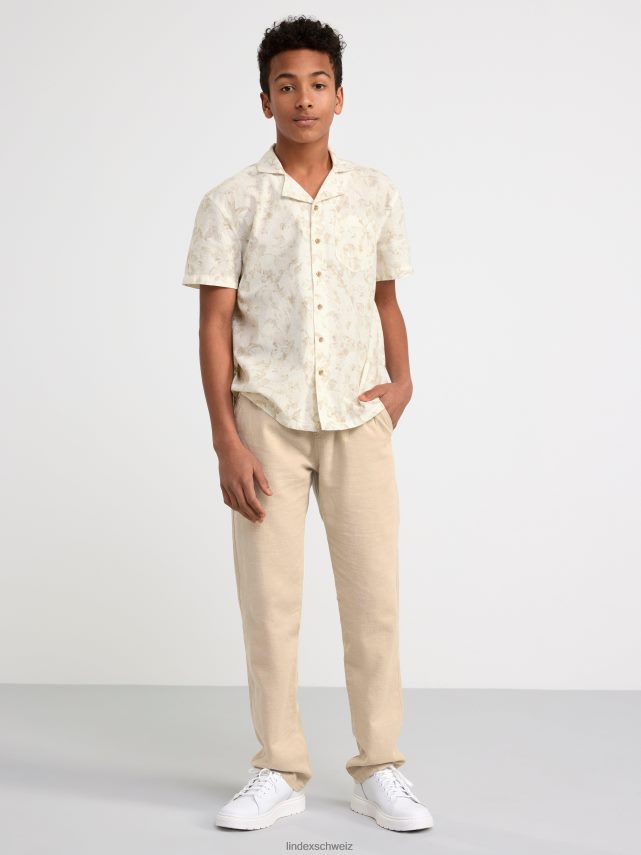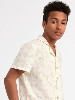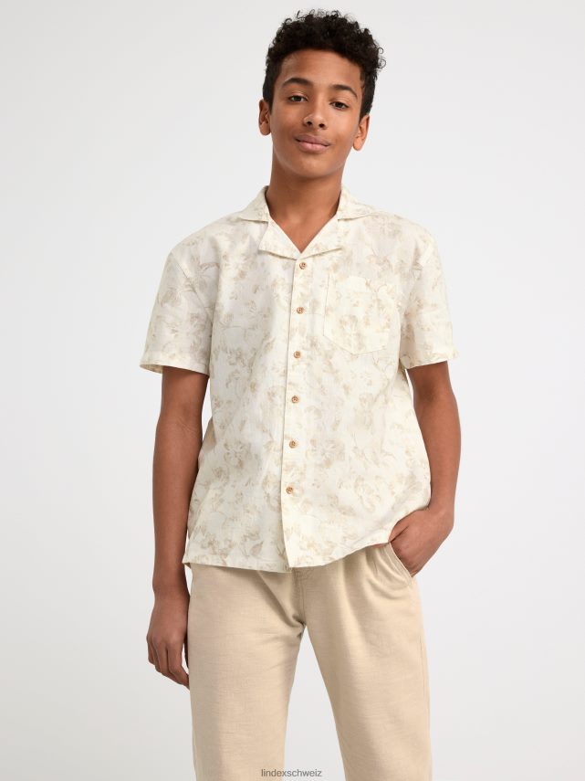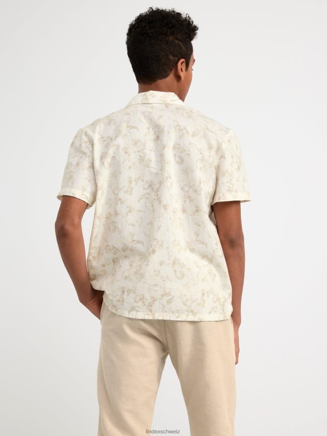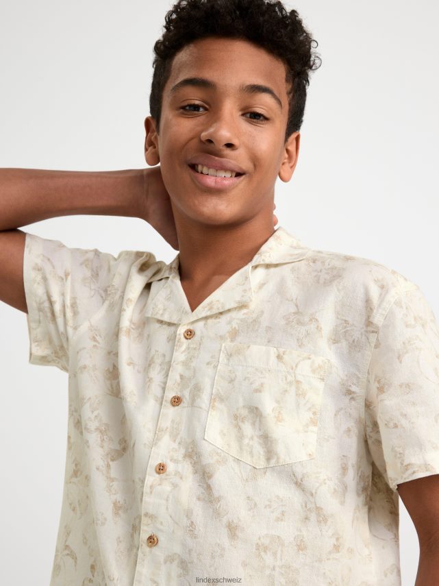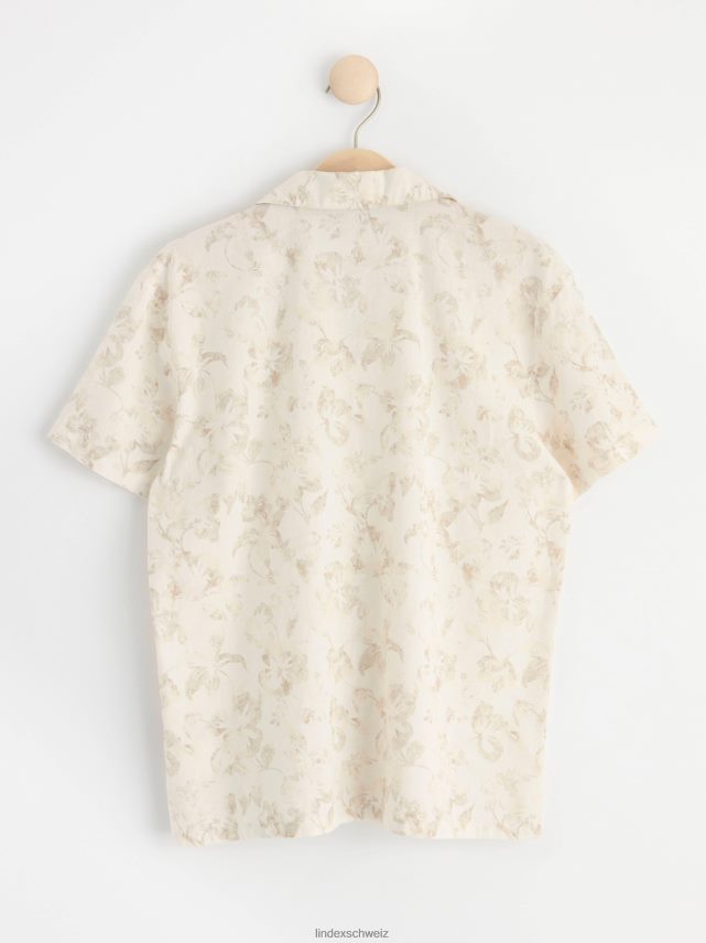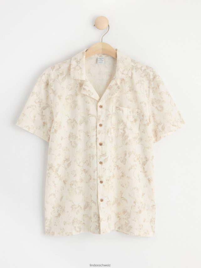 une chemise à manches courtes en lin mélangé avec un imprimé floral intégral.