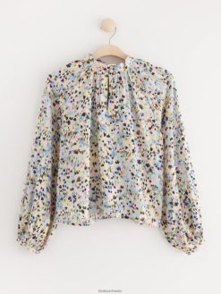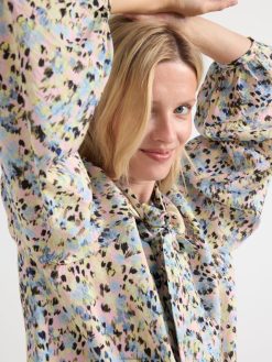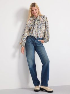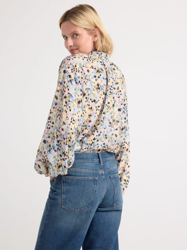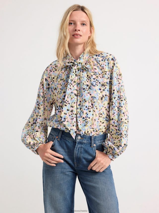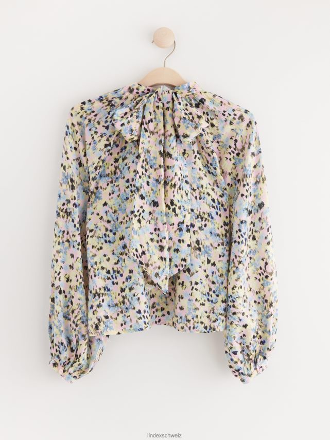 blouse en viscose recyclée à manches longues et larges, coupe droite et nœud décoratif au niveau du cou.