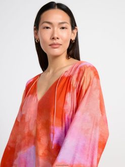 blouse en viscose recyclée à manches longues et larges, coupe droite et nœud décoratif au niveau du cou.