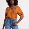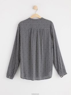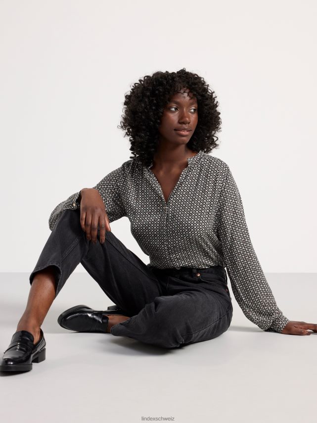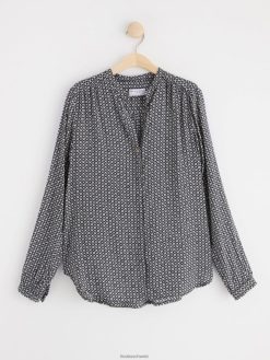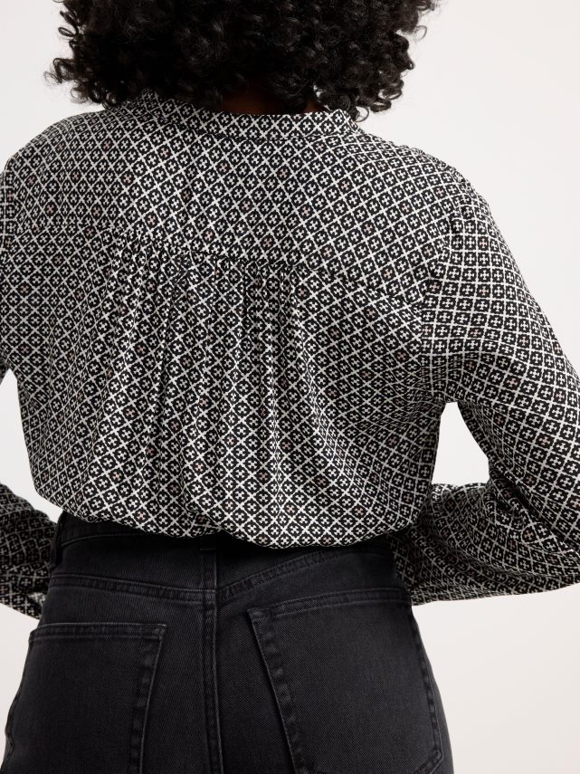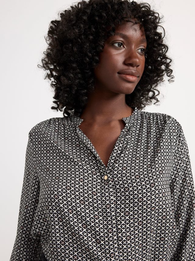 blouse tissée en viscose à manches longues, coupe droite et boutonnage dissimulé sur le devant.