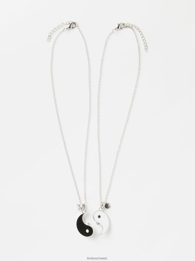 un collier en deux parties élégant et amusant en forme de yin et de yang avec fermeture magnétique pour maintenir les deux parties ensemble. une belle chose à partager avec votre meilleur ami.