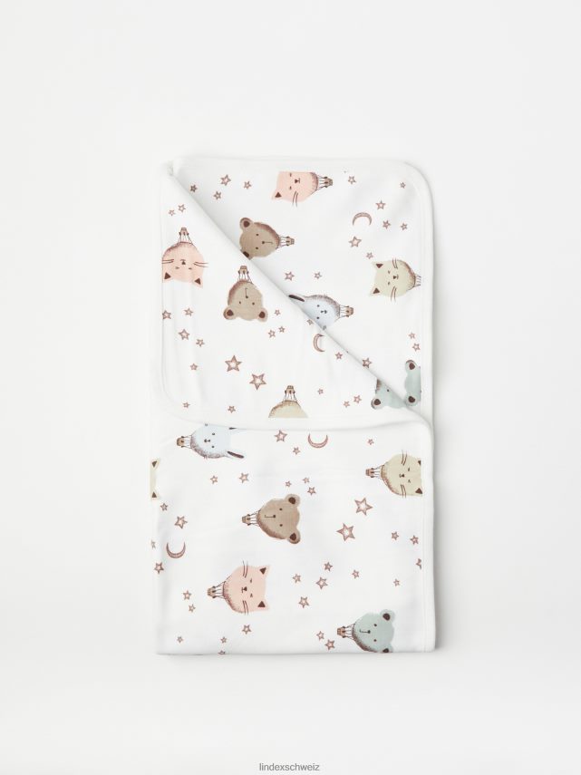 couverture avec des animaux en montgolfière blanc légèrement poussiéreux Lindex accessoires bébé D44L8F4225