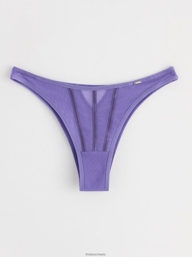 culotte brésilienne à taille régulière, confectionnée en maille douce avec des rayures en satin sur le devant.