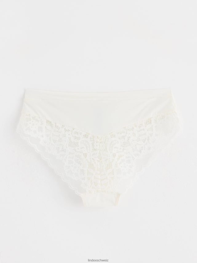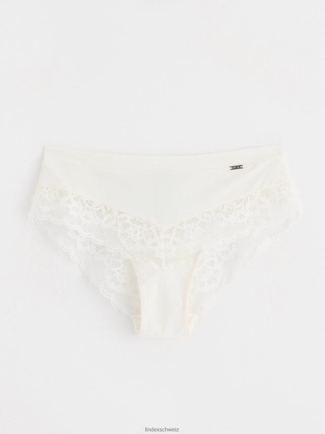 - bordure en dentelle sur le devant et ouvertures à l’arrière des jambes
