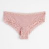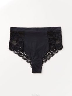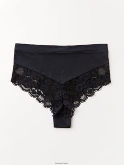culotte brésilienne à taille haute confectionnée dans une matière douce et brillante et en dentelle transparente avec bords festonnés. choisissez vos préférées parmi les différentes couleurs.