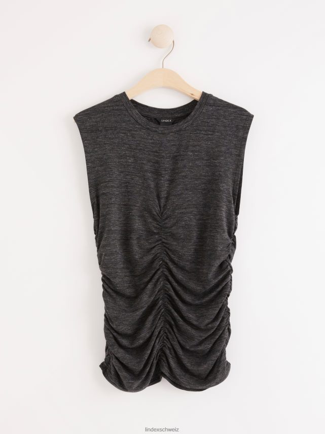édition en ligne. haut en jersey doux et confortable avec des fronces élastiquées sur le devant et sur les côtés. matériel. cette pièce est partiellement réalisée en tencel lyocell. le matériau provient d’une foresterie responsable et est produit avec un impact moindre sur l’environnement. la production a lieu dans un système en boucle fermée où les produits chimiques sont réutilisés.
