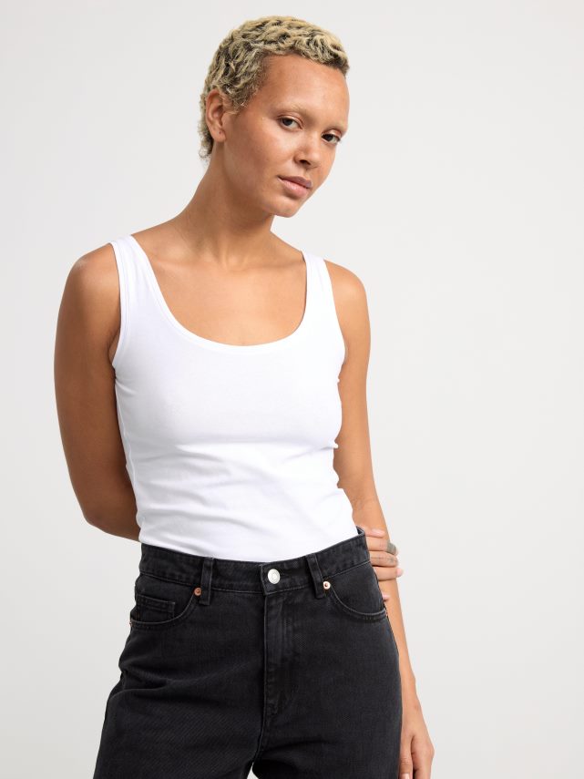 débardeur long en coton biologique confectionné à partir d’un mélange de coton recyclé doux. parfait pour un usage quotidien.