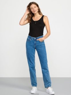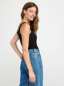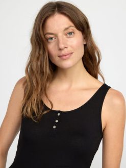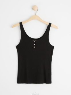 débardeur côtelé avec patte de boutonnage noir Lindex vêtements femmes D44L8F298