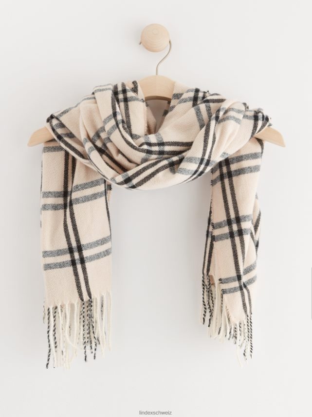 une écharpe douce avec des bords à franges et un motif à carreaux sur toute la surface. matériel. cette pièce est partiellement fabriquée en polyester recyclé. Lorsque l’on utilise du polyester recyclé, cela signifie que des matériaux qui ont déjà été produits, comme les bouteilles en PET, ont une autre chance. il est beaucoup plus économe en ressources que la production de nouveaux matériaux, ce qui le rend meilleur pour l’environnement et réduit l’impact climatique.