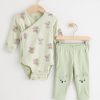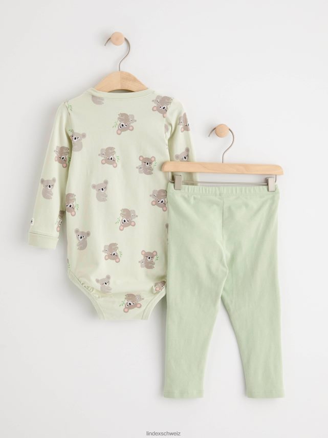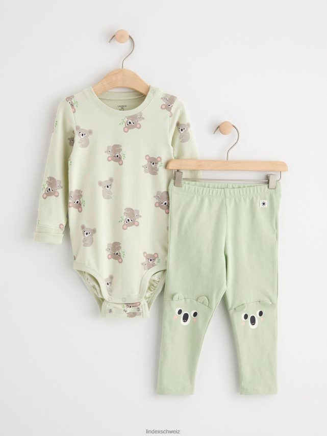 ensemble confortable comprenant un body à manches longues avec un imprimé koala intégral, ainsi que des leggings assortis avec des imprimés koala et cousus des oreilles aux genoux. grâce à notre solution intelligente de taille étendue, avec deux rangées de boutons poussoirs à l’entrejambe, bébé peut grandir d’une taille tout en gardant le même vêtement. matériel. c’est une pièce certifiée Gots. il est fabriqué à partir de coton biologique et chaque étape de la production a été certifiée de manière indépendante pour garantir qu’elle respecte les exigences sociales et environnementales de Gots (norme mondiale des textiles biologiques).