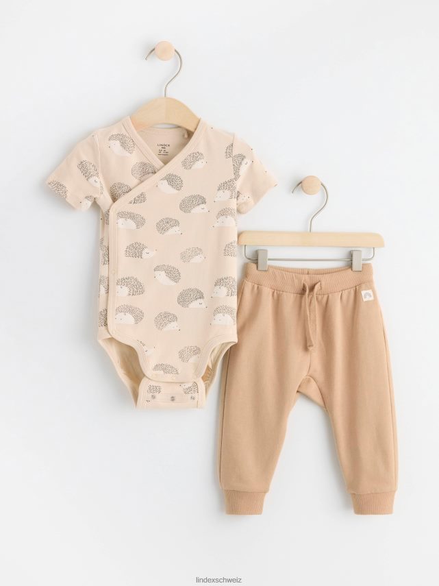 ensemble avec body cache-cœur et pantalon beige clair Lindex vêtements bébé D44L8F4084
