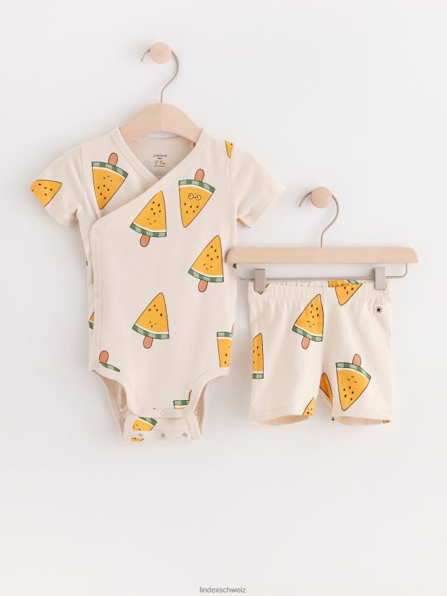 ensemble confortable comprenant un body à manches courtes au design portefeuille et un short de motard assorti, tous deux avec un imprimé pastèque sur toute la surface. est livré avec notre solution intelligente de taille étendue, afin que le bébé puisse grandir d’une taille tout en gardant le même vêtement. matériel. c’est une pièce certifiée Gots. il est fabriqué à partir de coton biologique et chaque étape de la production a été certifiée de manière indépendante pour garantir qu’elle respecte les exigences sociales et environnementales de Gots (norme mondiale des textiles biologiques).